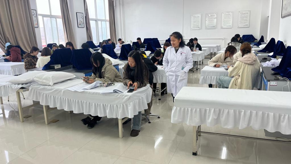 实验现场秩序井然又充满探索热情,参与学生循着“个性化评估—知识讲解—实操体验”的流程,沉浸式感受中医与科技的融合魅力。活动伊始,同学们先完成中医体质测试,通过专业评估明确自身体质类型;随后,中医学实验室主任吴大梅结合测试结果,深入浅出地讲解了不同体质(如阴虚质、阳虚质、痰湿质等)的形成原因,并针对大学生常见的作息不规律、压力大等问题,给出饮食调理、运动保健、情志调节等实用建议,让传统养生知识真正贴近校园生活。