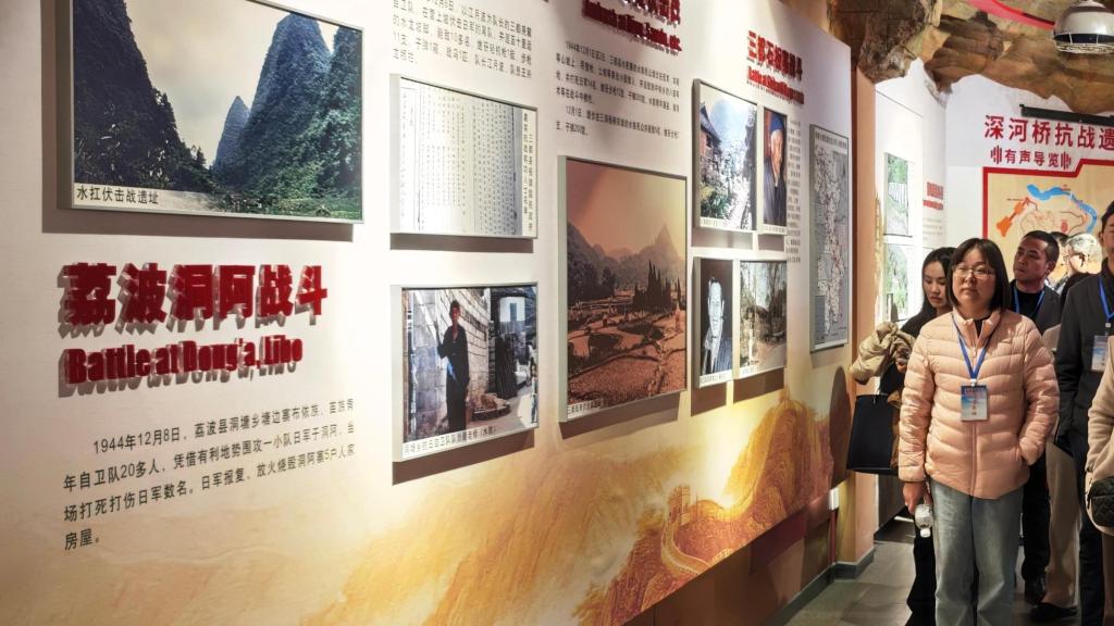 首先,参观了深河桥抗战遗址陈列馆。馆内丰富的历史文物、翔实的文献史料、生动的场景复原以及珍贵的影像资料,系统展现了黔桂边区抗战的壮阔历程与英雄事迹。从军民同心构筑防线的艰辛,到将士们浴血奋战的壮烈,每一件展品都承载着厚重的历史记忆。同志们驻足凝视,认真聆听讲解员讲述先烈们抛头颅、洒热血的英雄事迹,深切体会到革命胜利的来之不易和革命先烈的崇高精神。