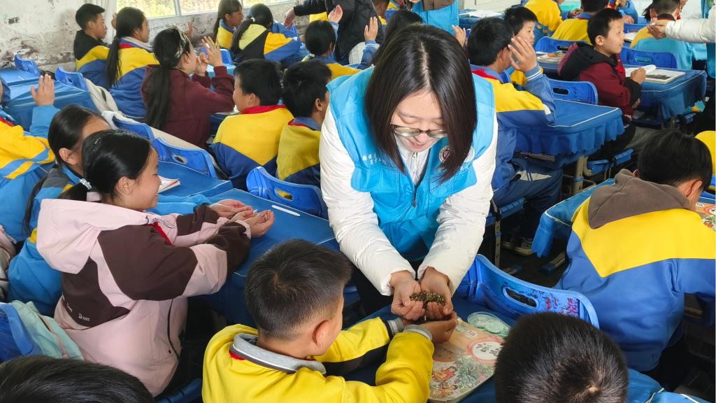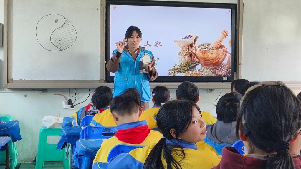 “中医文化展示”环节更是妙趣横生,研究生同学通过展示常见中药材、讲解针灸穴位知识,激发了学生们强烈的好奇心。当讲解眼保健操的正确穴位时,学生们纷纷在自己的脸上比划寻找;在听到华佗、李时珍等名医故事时,个个聚精会神;在亲手触摸中药材、辨识药性时,更是踊跃参与。不仅让学生们对中医药文化有了初步认识,更在他们心中播下了传承中华优秀传统文化的种子。