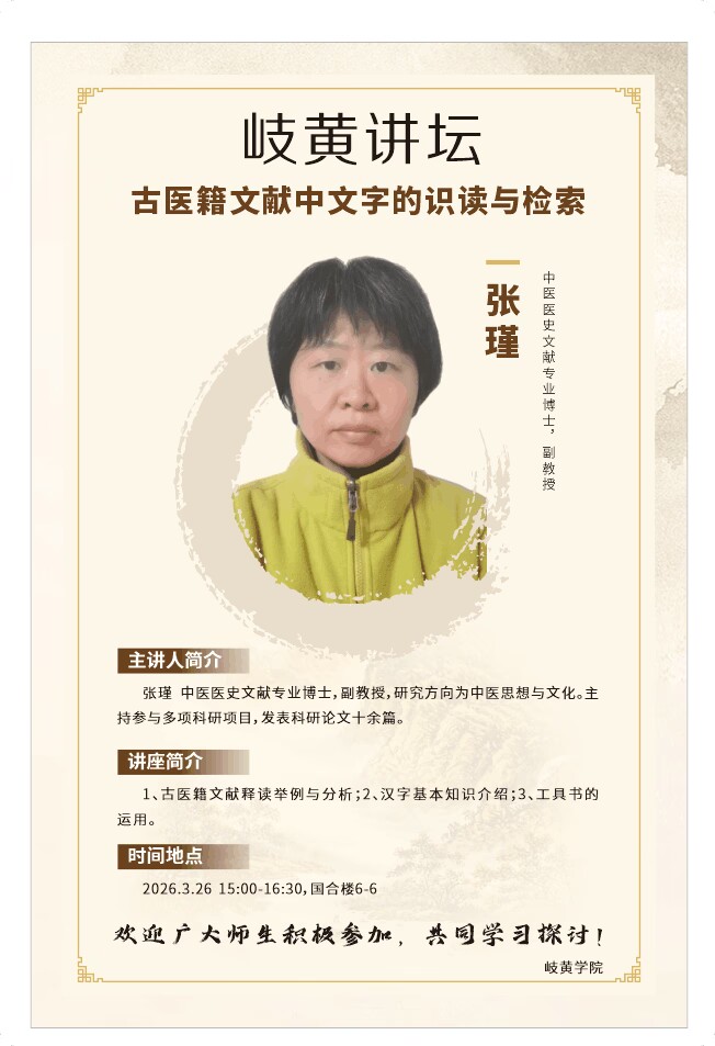 岐黄讲坛:古医籍文献中文字的识别与检索